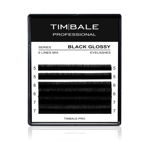 Ресницы чёрные TimBale Black Glossy, Микс 6 линий