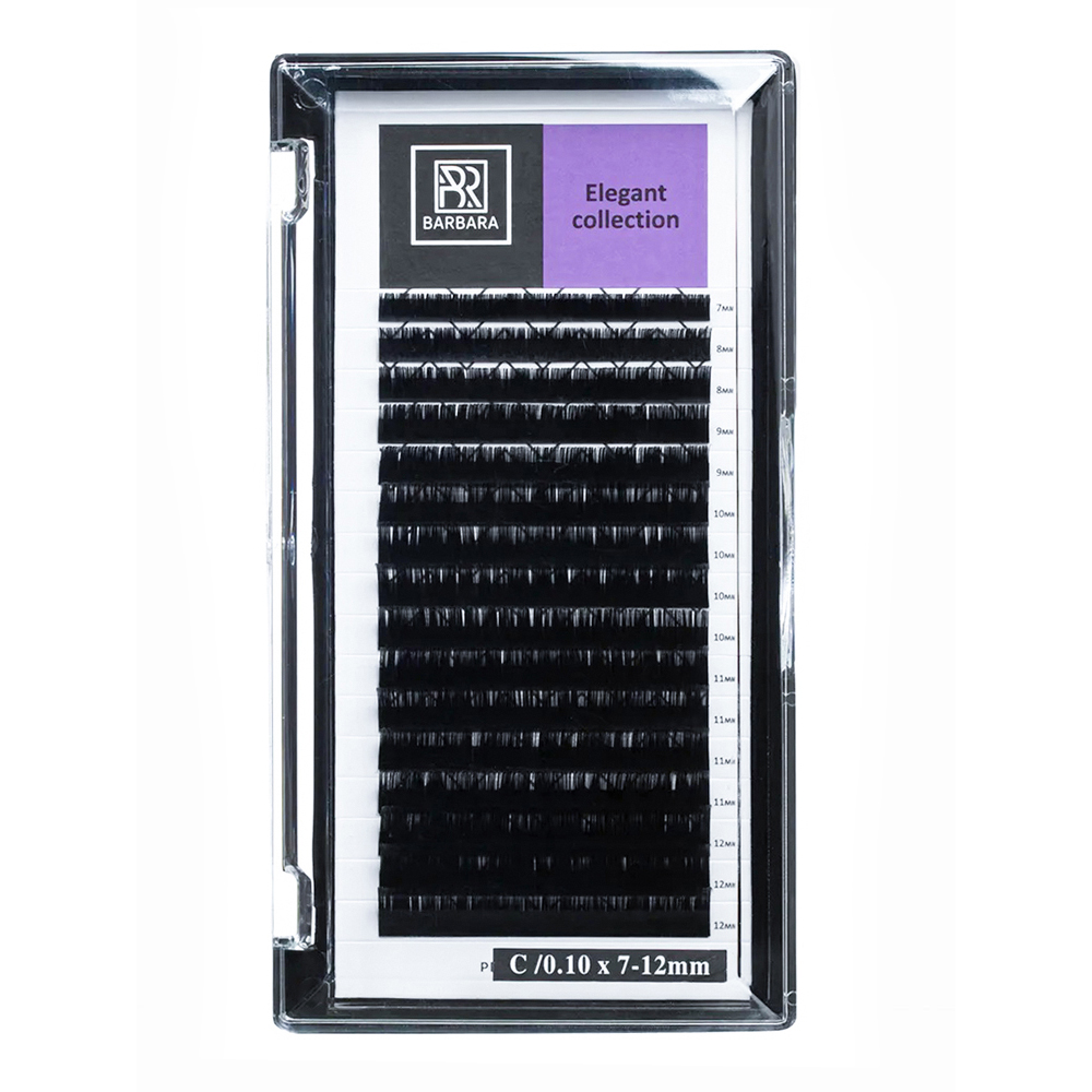 Вії Barbara виробляють з найкращого південнокорейського волокна. Вії серії Elegant виконані в технології подвійного звуження. Кожна вія має звуження від основи до середини вії та від середини до кінчика. Вії виходять м'якими та невагомими.